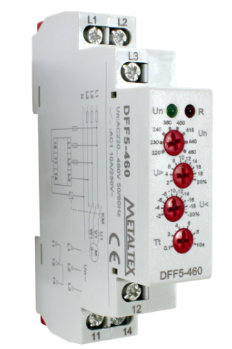 Descrição: RELÉ FALTA DE FASE, INVERSÃO DE FASE, SUB E SOBRETENSÃO - DE 220-460VCA TRIF