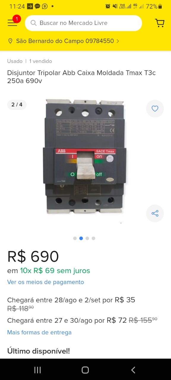 Descrição: DISJUNTOR TRIPOLAR ABB SACE TMAX- 250a