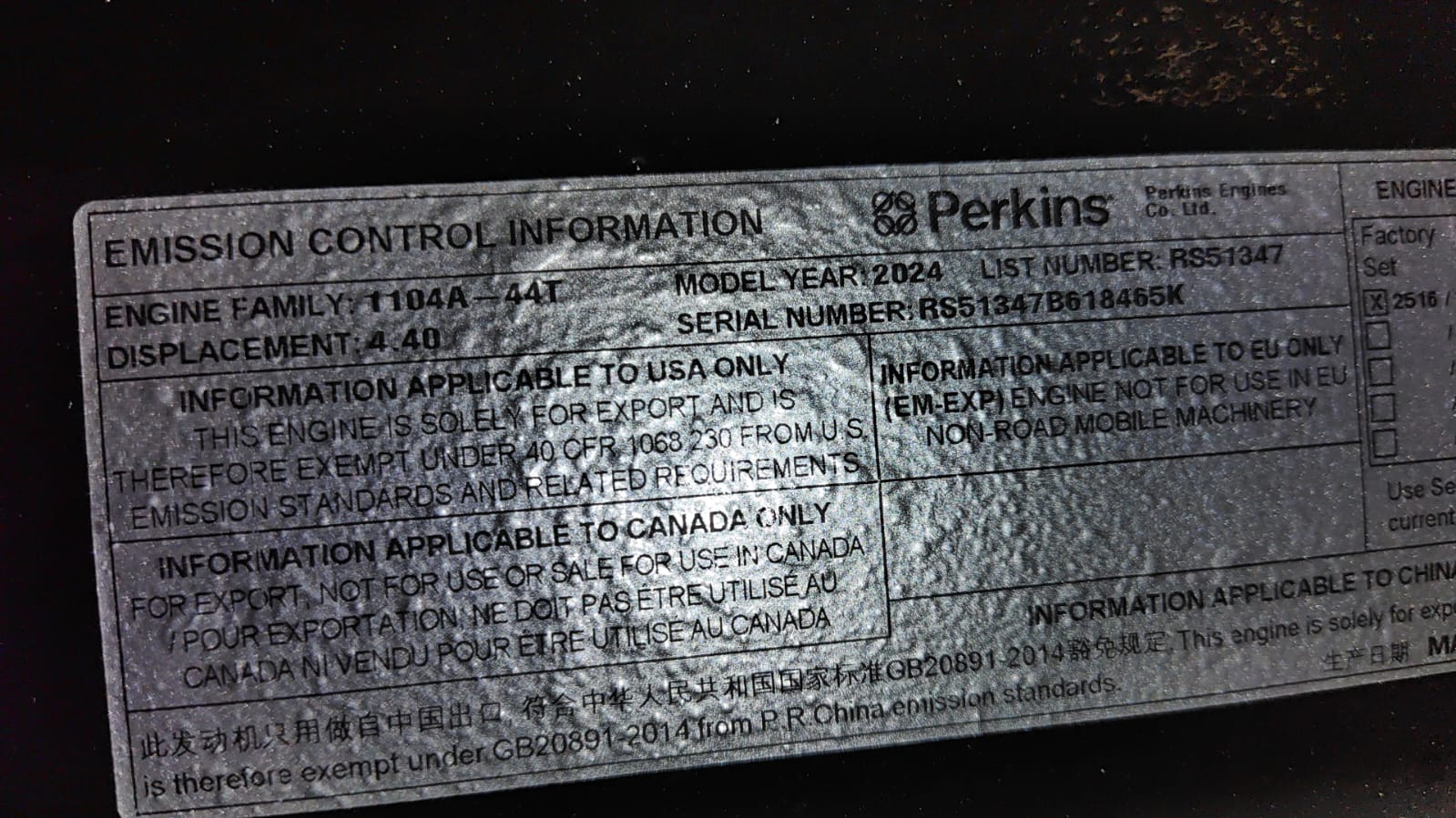 Fabricante Motor: PERKINS