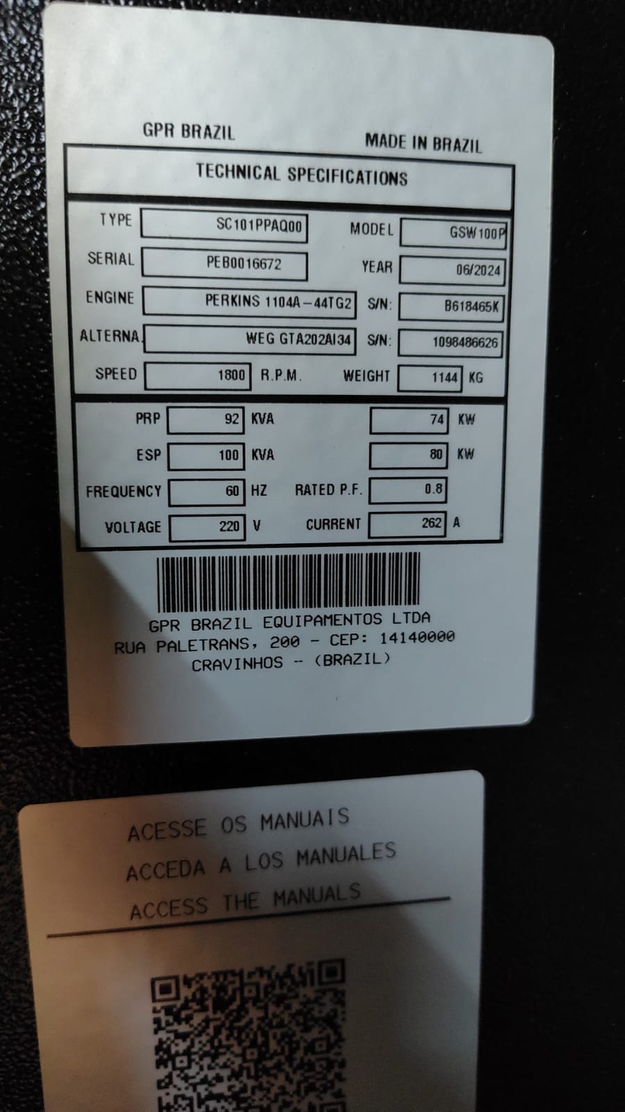 Número Serie do Grupo: PEB0016672