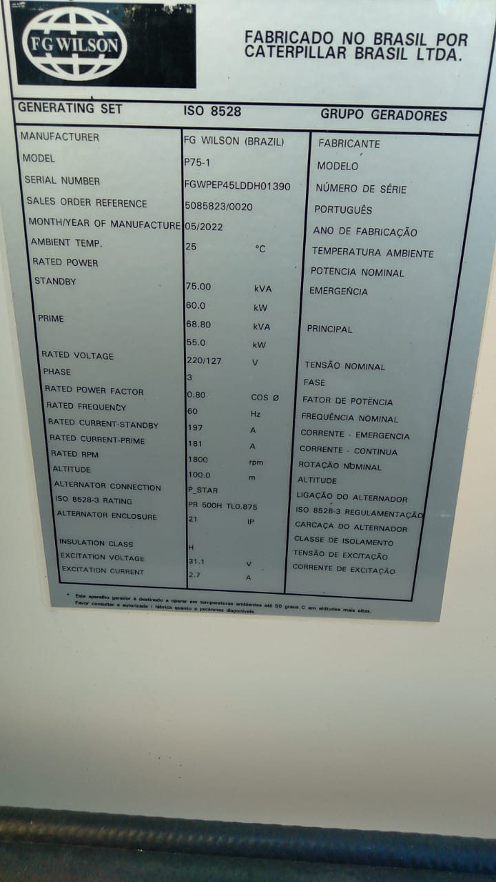 Número Serie do Grupo: FGWPEP45LDDH01390
